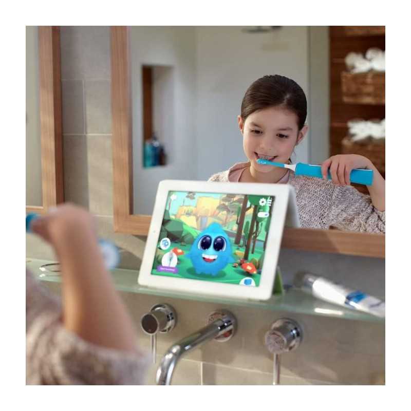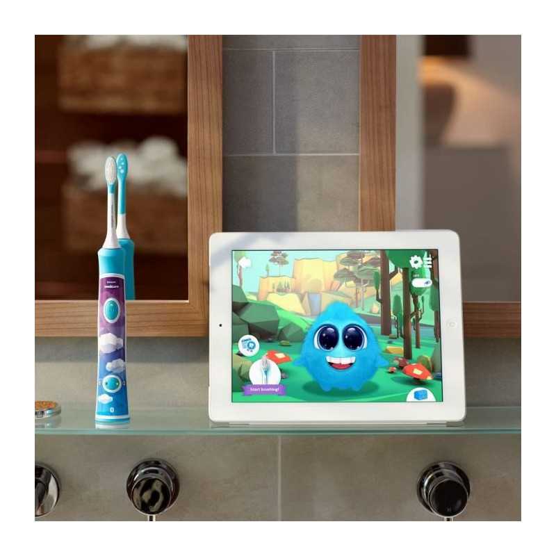 Philips Sonicare for Kids connectée : efficace et ludique pour apprendre en s'amusant - Aplication Gratuite Sonicare kids - Buletooth® - 2 modes (4 ans + et 7 ans +) - 8 autocollants - Minuteur de 2 min - Autonomie 2 semaines, 2 tete de brosses (1 SFK Min