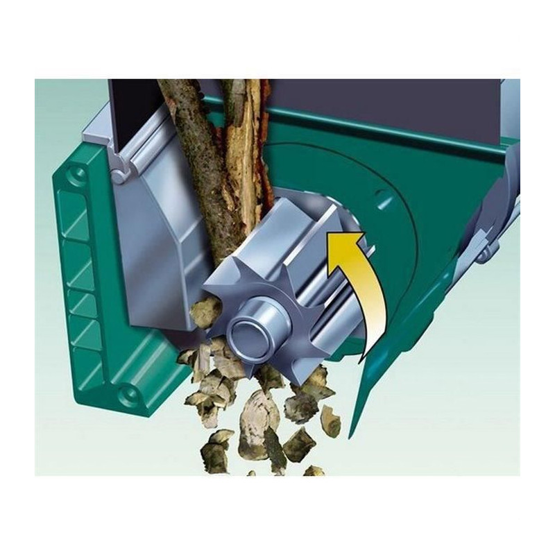 Puissant : le systeme de coupe par rotor porte-couteaux garantit un débit extremement rapide jusqu'a 170 kg/h avec des branches jusqu'a 38 mm de diametre.