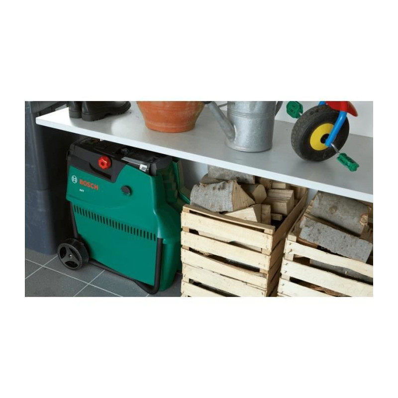Broyeur de végétaux Bosch - AXT 22 D (2200W, poussoir pour déchets verts, bac 53L, débit: 170 Kg/H, coupe maximale: Ø 38 mm