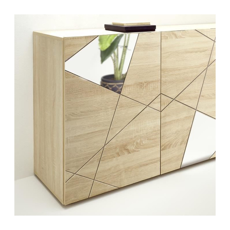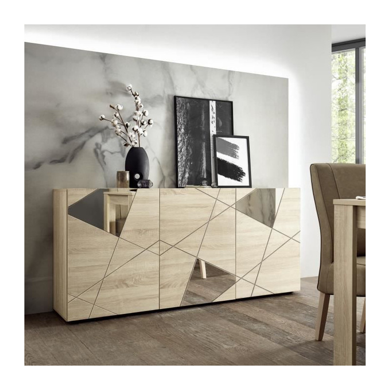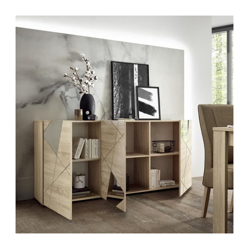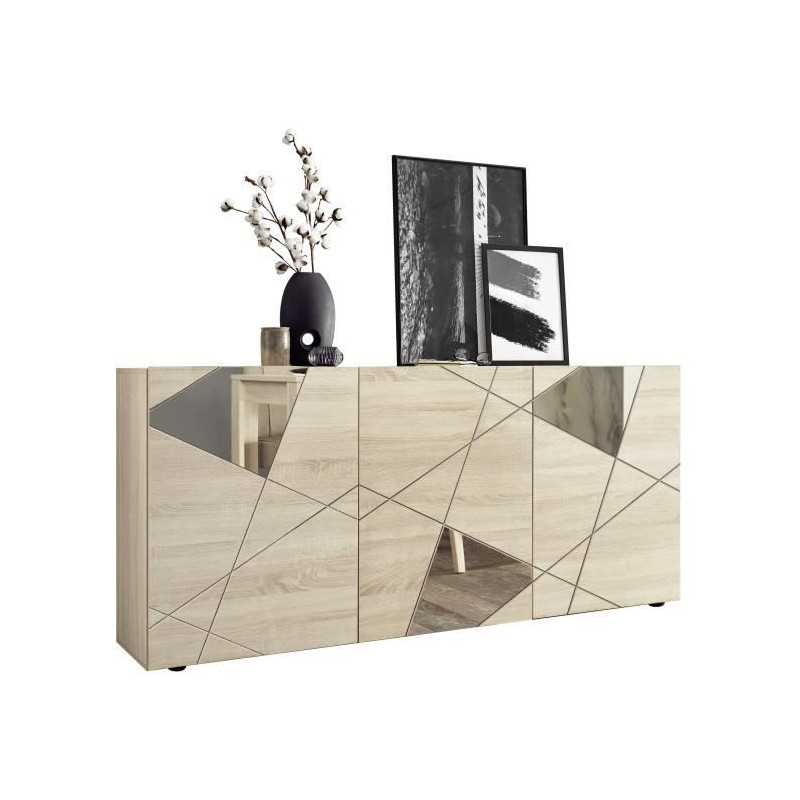 Buffet haut - Chene Sonoma, blanc, gris et bleu - Style...
