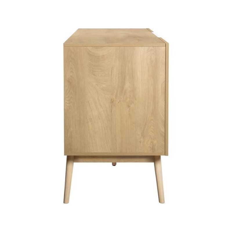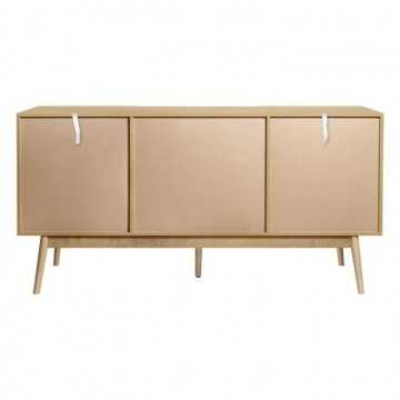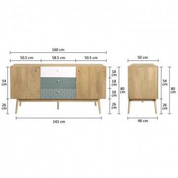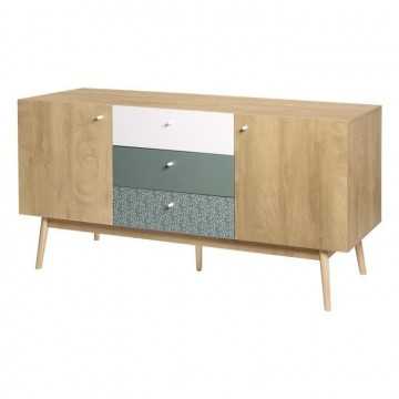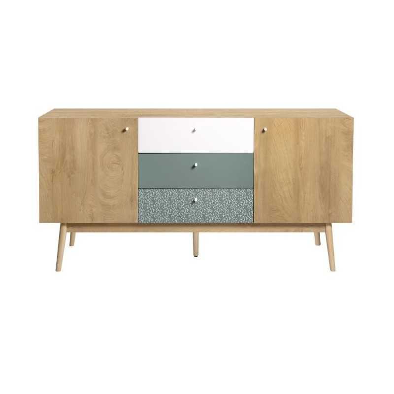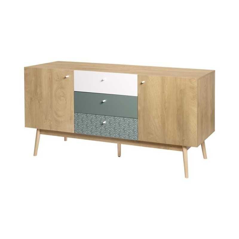 Buffet - Décor chene et vert - Pieds en bois massif - 3...