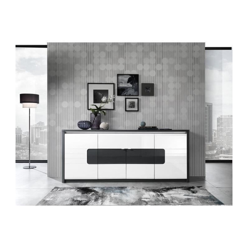 ALBEA Enfilade - Blanc et gris - 4 portes + 1 tiroir - BELLINI - L 220 x P 46 x H 90 cm