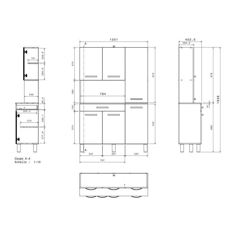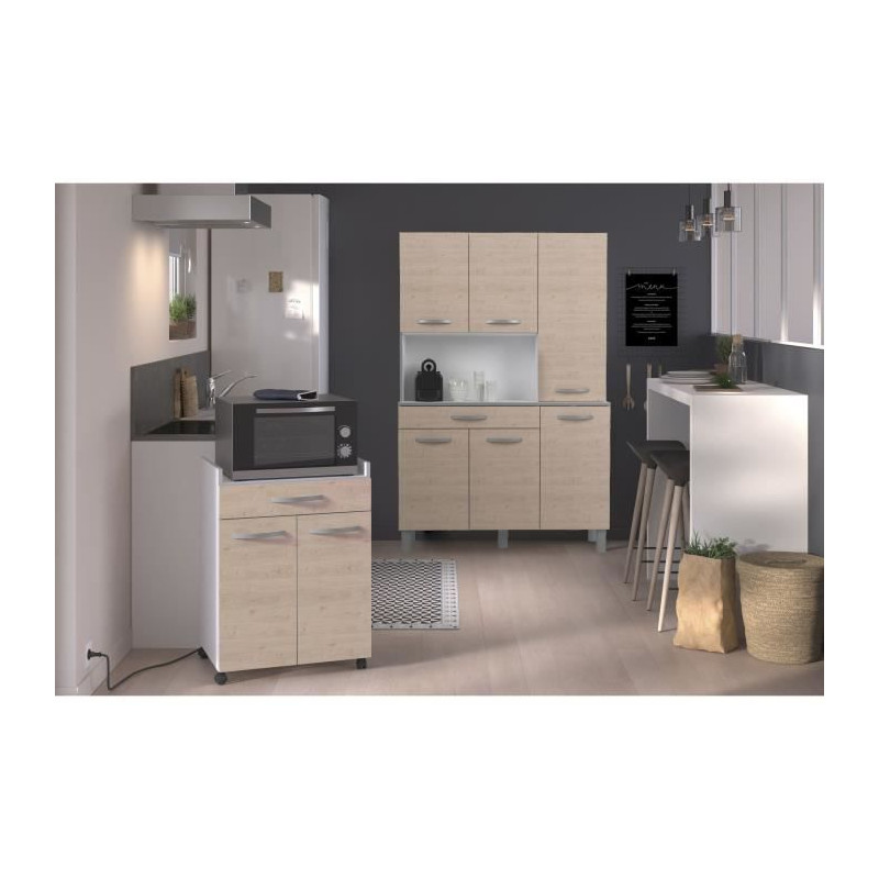 ECO Buffet de cuisine avec LED L 120 cm - Décor chene et...