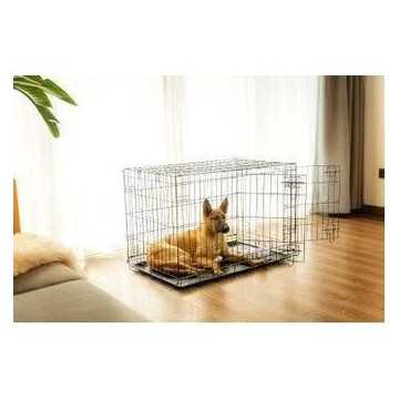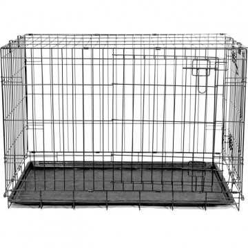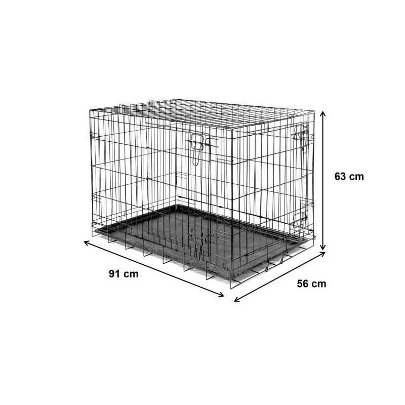 Plein Air - Direction les beaux jours avec cette cage pour chiens moyens. Cage pliable dimensions 91 x 58 x 66 cm. Grille en époxy, bac plastique amovible, acces facile : 2 portes.