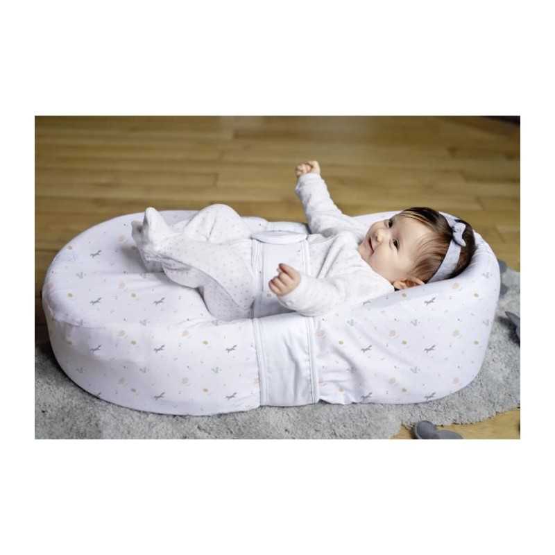 Le Cocoonababy® permet une transition en douceur entre le ventre de la maman et le monde extérieur car le bébé y retrouve une mobilité voisine de celle qu'il a connue dans l'utérus maternel Une housse et une bande ventrale en jersey de coton imprimé Happy fox Coton peigné pour une extreme douceur Composition 100 % coton Certifié oekotex class 1 Sans métal lourd, phtalate, formaldéhyde, BPA.