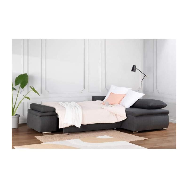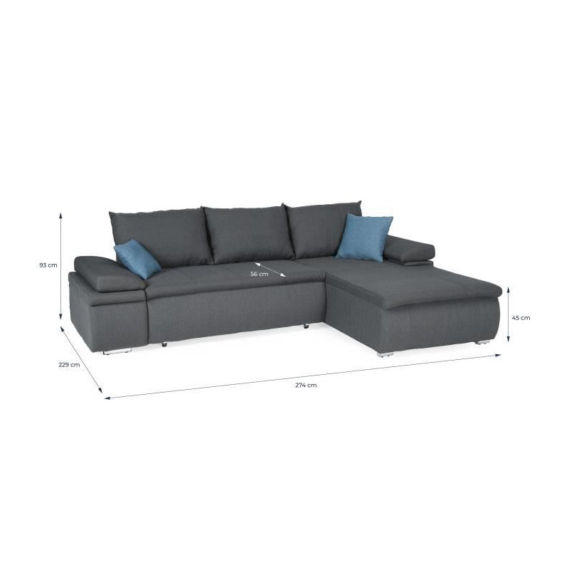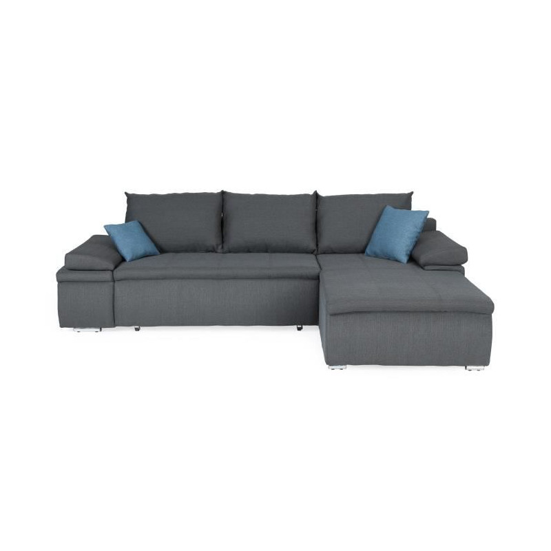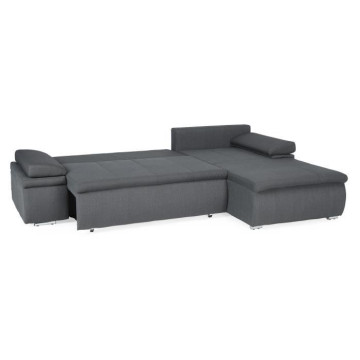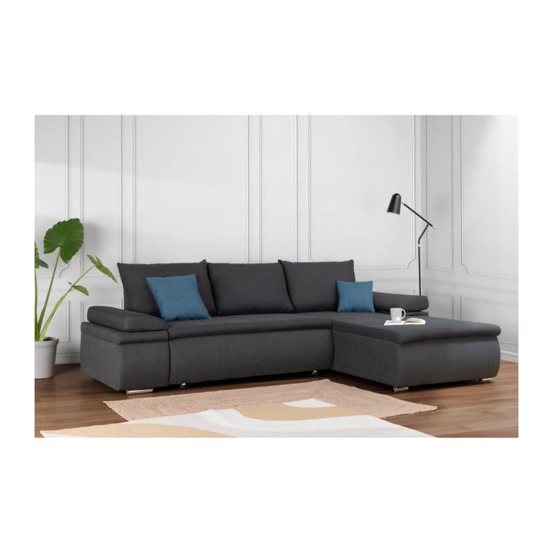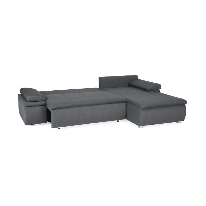 Canapé d'angle droit fixe - Cuir gris - L 300 x P 231 x H...