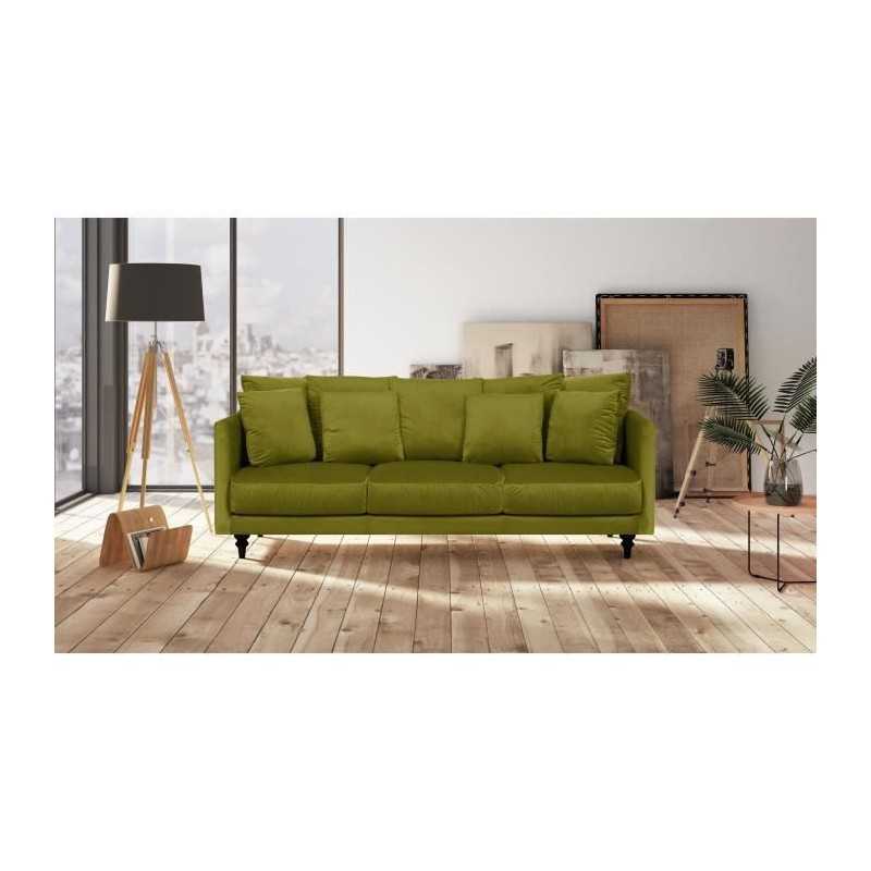 Canapé d'angle fixe + 2 coussins - 3 places - Tissu Beige...