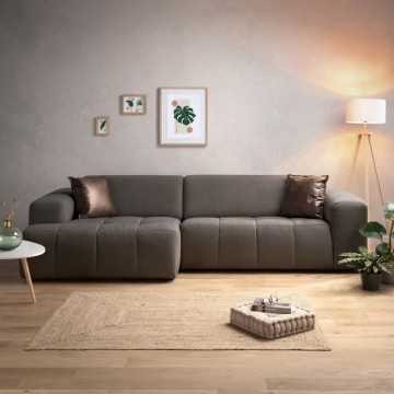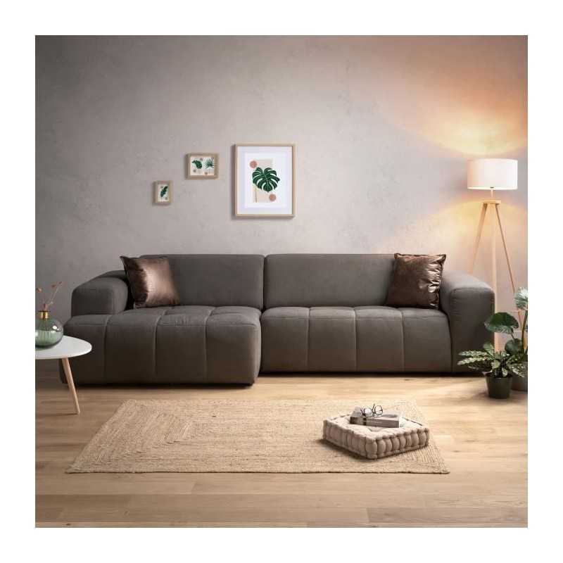 Canapé d'angle fixe droit 5 places MARLEY - Tissu bleu...