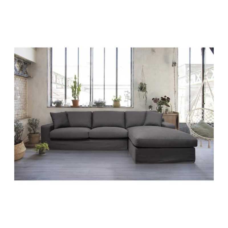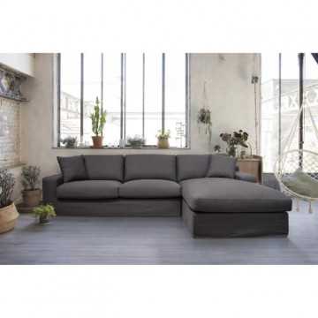Canapé 3 places fixe - Cuir gris - L 228 x P 106 x H 73...