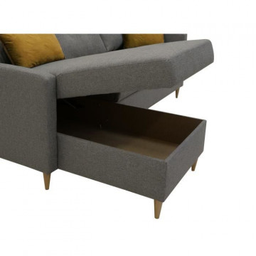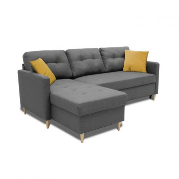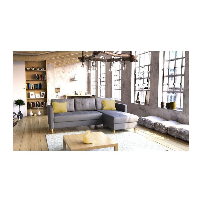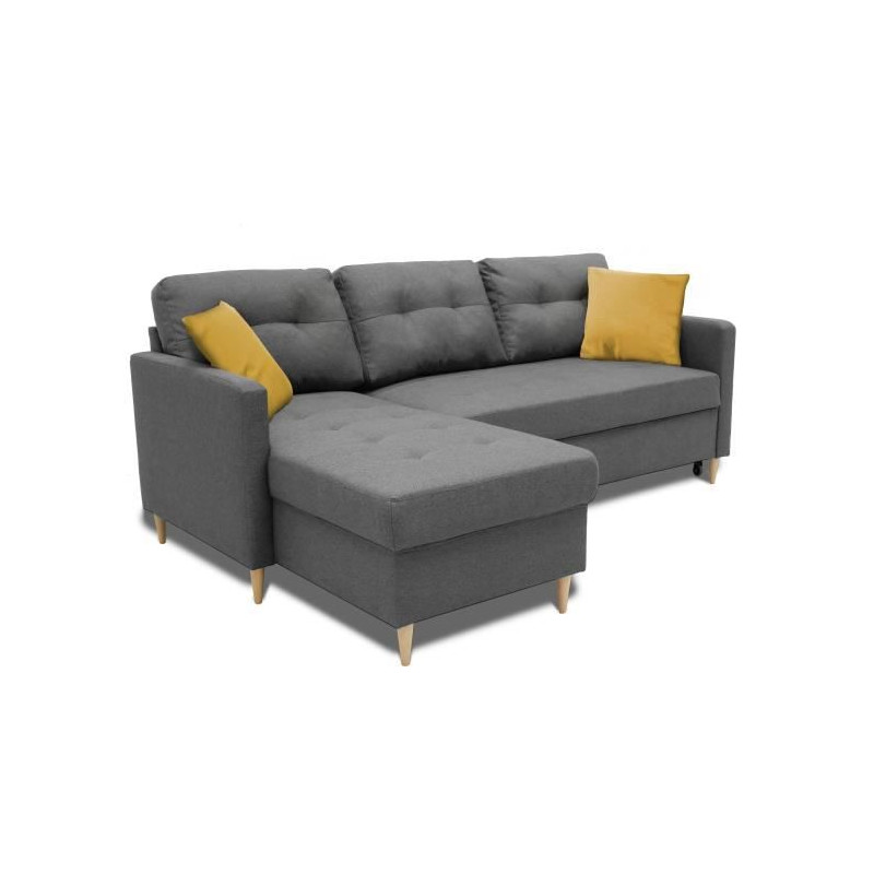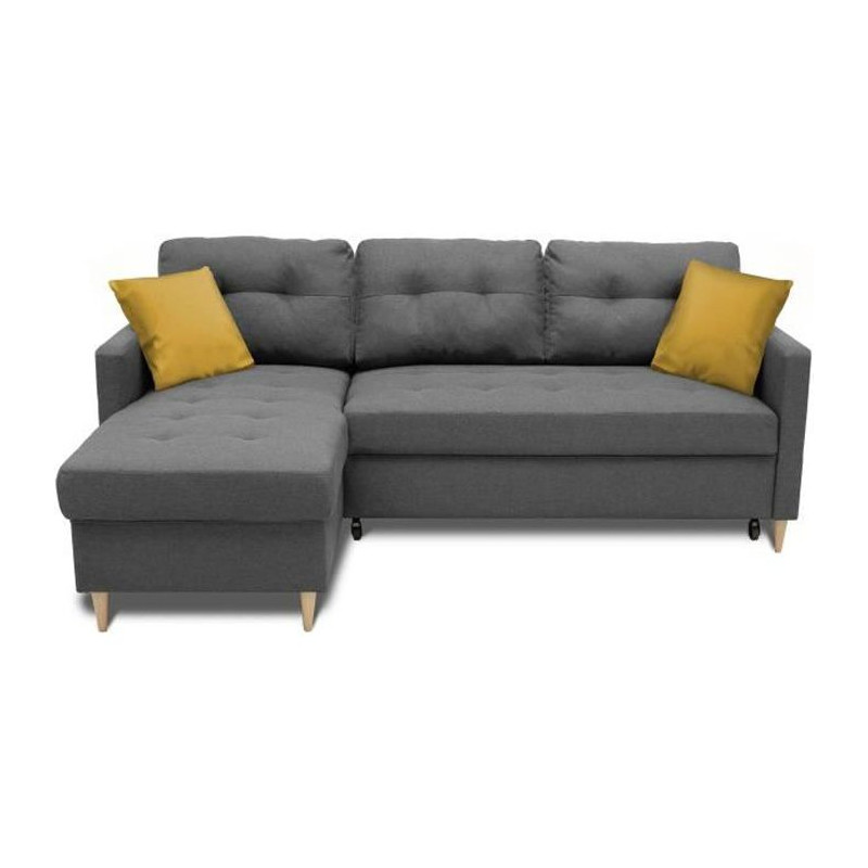 Canapé d'angle fixe 4 places BOB - Tissu anthracite -...