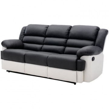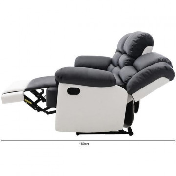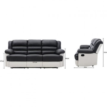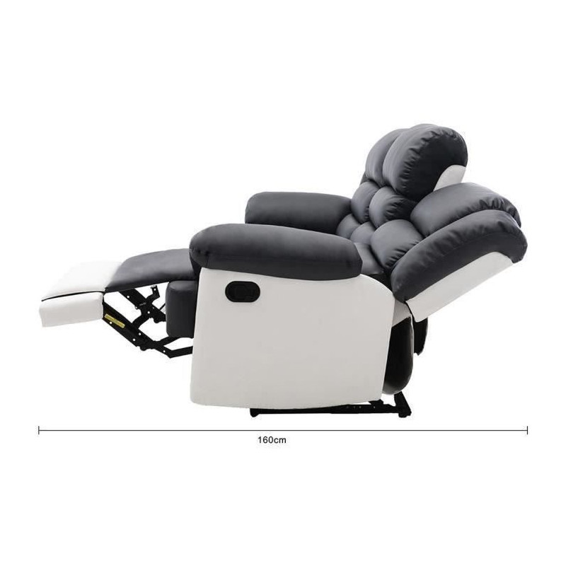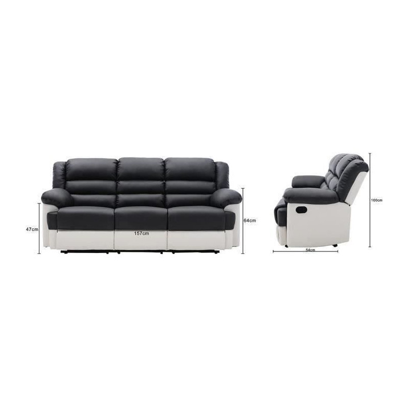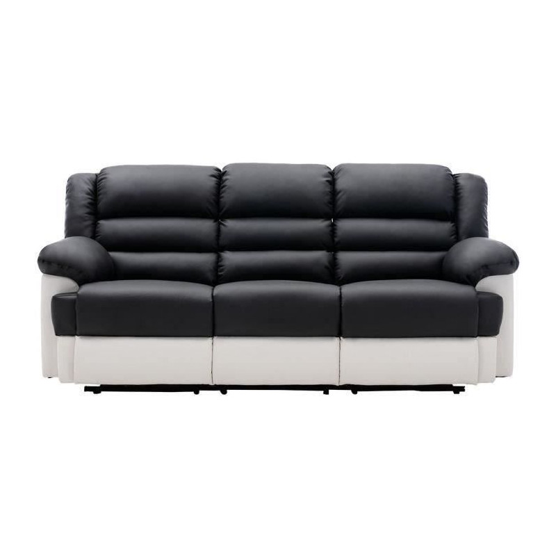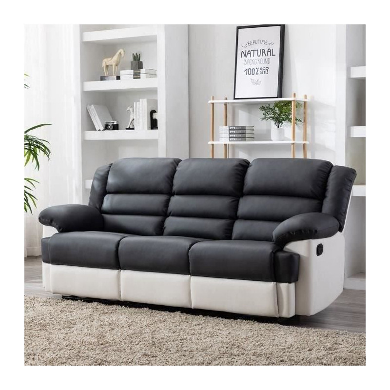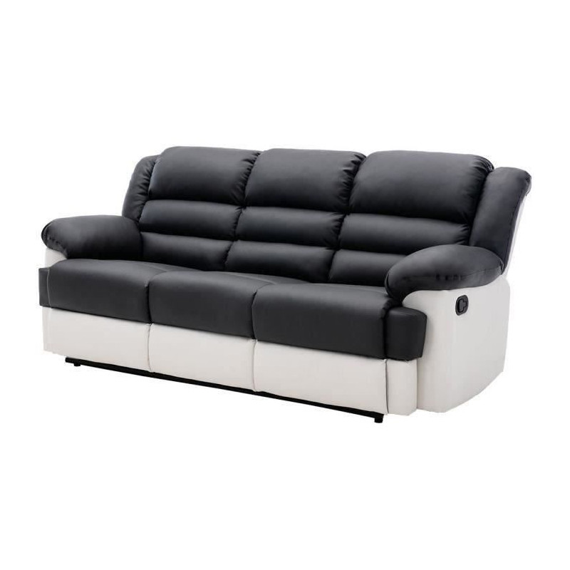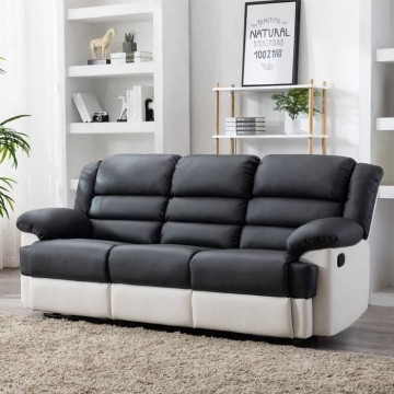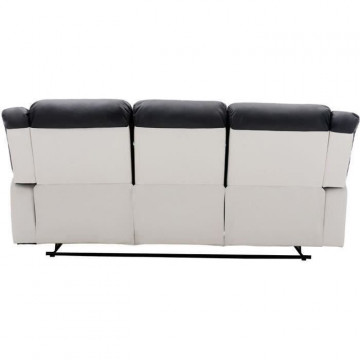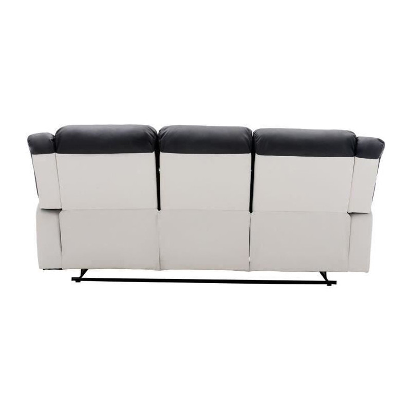Canapé 3 places dont 2 places relax manuel - Simili Blanc et gris - L 215 x P 102 x H 81 cm - TERRENCE