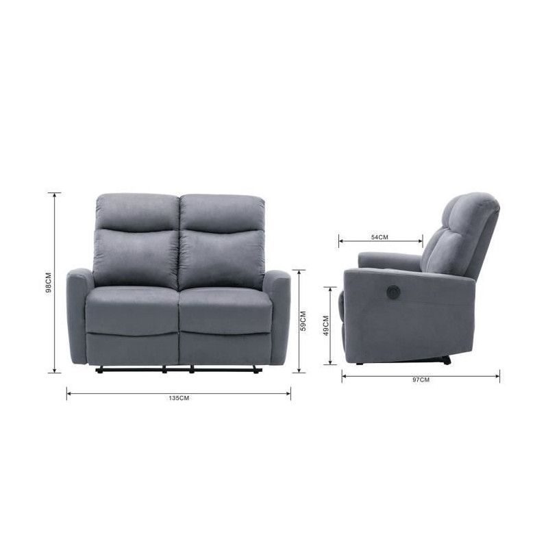 Canapé 3 places + 2 coussins - Tissu Gris clair - L 175 x...