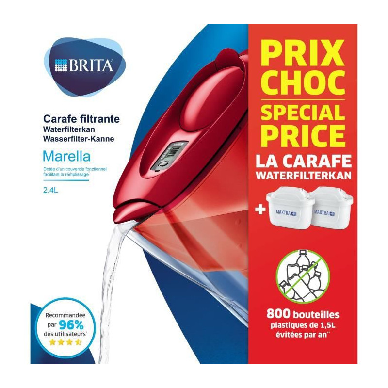 BRITA Carafe filtrante MARELLA Rouge + 1 Cartouche de...
