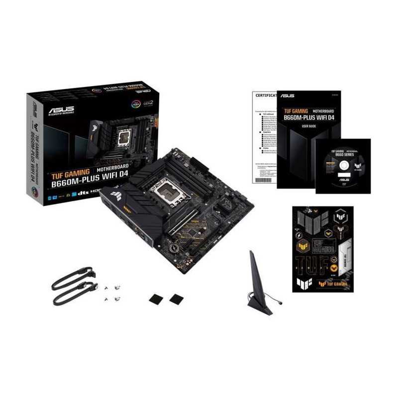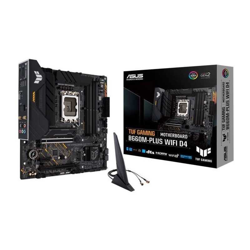 La carte mère ASUS TUF GAMING B660M-PLUS WIFI D4 est conçue pour offrir aux joueurs une expérience de jeu fluide et immersive. Elle est équipée d'un chipset Intel B660 et prend en charge les processeurs Intel Core de 10e génération. Avec ses technologies avancées, elle offre des performances optimales pour les jeux et autres applications exigeantes. La carte mère dispose également d'une connectivité Wi-Fi 6 (802.11ax) intégrée, ainsi que d'un port Ethernet Gigabit pour une connexion réseau fiable et rapide. Elle est dotée de ports USB 3.2 Gen 1 et Gen 2, ainsi que d'une prise audio Realtek S1220A haut de gamme pour un son riche et clair. Enfin, elle est compatible avec les technologies ASUS TUF Protection, qui comprennent le refroidissement par dissipation thermique, la protection contre les surtensions et les courts-circuits, ainsi que la protection contre les surchauffes.