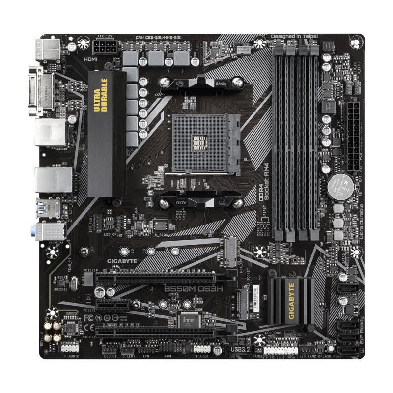 La carte mère Gigabyte B550M DS3H est une carte mère puissante et performante conçue pour les joueurs et les professionnels. Elle est équipée d'un chipset AMD B550 qui prend en charge les processeurs AMD Ryzen de 3ème génération et offre des performances optimales pour le jeu et le multitâche. La carte mère est dotée de nombreuses fonctionnalitites, notamment un port PCI-Express 4.0, des ports USB 3.2 Gen1, des ports M.2 avec support NVMe et SATA, ainsi qu'un contrôleur audio Realtek ALC887. Elle prend également en charge la technologie DDR4 Boost pour une meilleure gestion des données et une vitesse de transfert plus rapide. La carte mère Gigabyte B550M DS3H est un excellent choix pour ceux qui recherchent une carte mère puissante et fiable à un prix abordable.