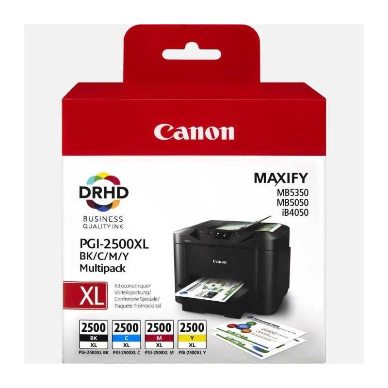 Encre haute densité a double résistance - Type d'imprimante : Jet d'encre - Réservoir XL d'encre - Canon PGI-2500XL C/M/Y/BK : Multipack de quatre couleurs (cyan, magenta, jaune, noir)