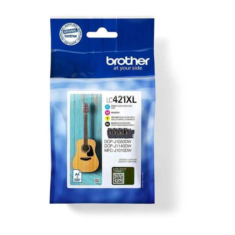 4 Cartouches d'encre LC421XLVAL - BROTHER - Noir, Cyan, Magenta et Jaune 500 pages - Pour DCP-J1050DW, MFC-J1010DW et DCP-J1140D