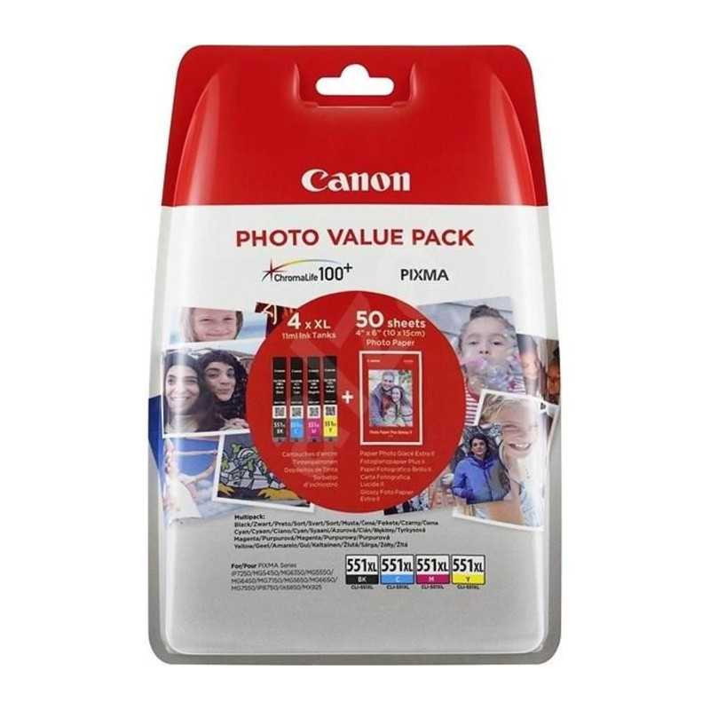 CANON Pack cartouches d'encres photo CLI-551XL - Noir, Cyan, Magenta et Jaune