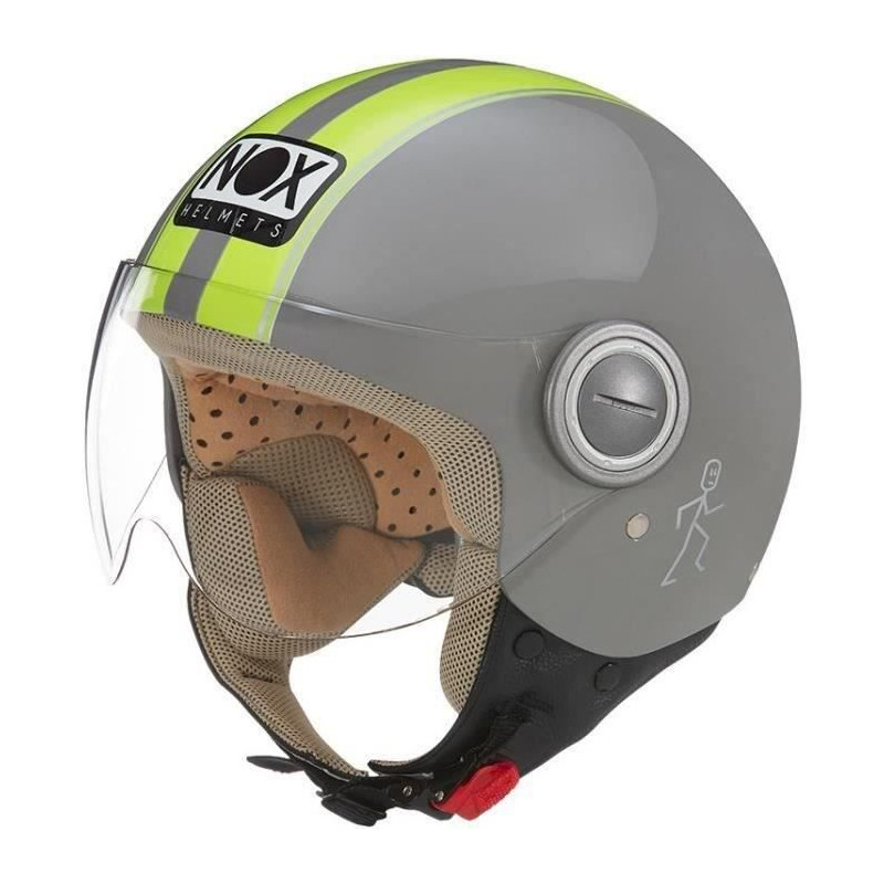 NOX Casque Jet N210 Gris Nardo Jaune - Ecran clair aviateur anti-rayures - Boucle micrométrique - Intérieur démontable et lavable.
