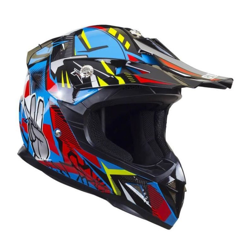 CGM Casque kid cross 209G Winner - Visiere casquette amovible - Intérieur prestige antibactérien - 1080 grs - Déco bleu