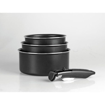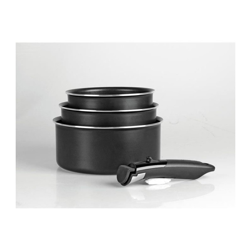 Set de 3 casseroles Aluminium pressé Gamme SITRAMOVIBLE BLACK PEPPER Ø16/18/20cm - Revetement intérieur anti-adhésif Whitford Xylan 2 couches noir avec print design - Coloris Noir - Avec manche amovible - Tous feux dont induction