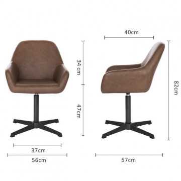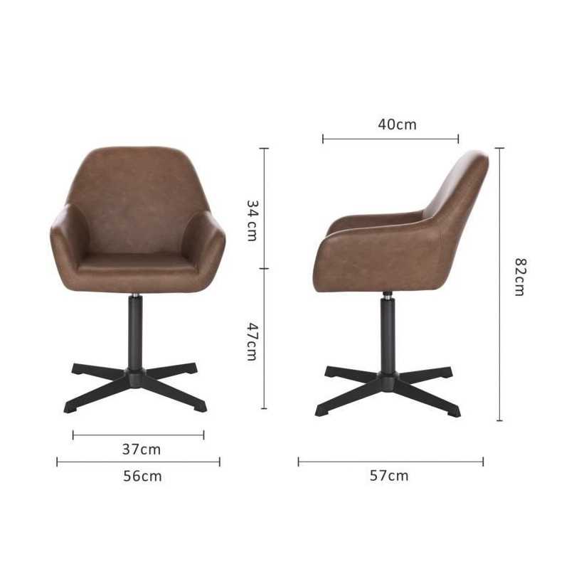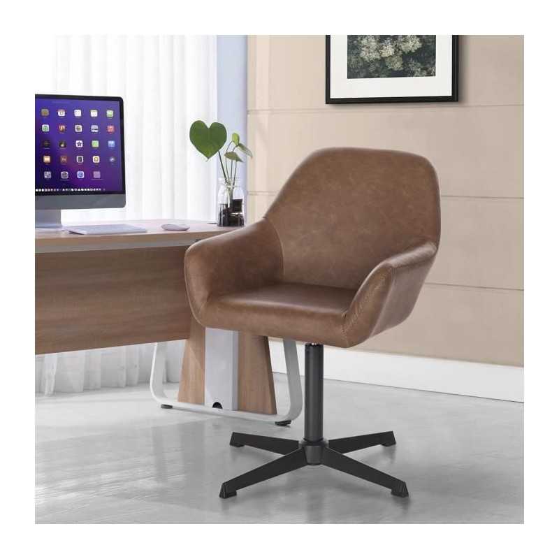 La chaise de bureau ETOLIO est un modèle pratique et élégant qui s'intégrera parfaitement à votre espace de travail. Elle est dotée d'un revêtement en simili marron qui lui donne une touche classique et intemporelle. Sa structure robuste et stable offre une assise confortable, tandis que ses pieds en métal garantissent une stabilité optimale. La chaise mesure 56 cm de largeur, 57 cm de profondeur et 82 cm de hauteur, ce qui la rend idéale pour les espaces restreints. Son design ergonomique vous permet de vous asseoir confortablement pendant des heures, tandis que son dossier rembourré vous offre un soutien supplémentaire. Cette chaise est facile à assembler et peut être utilisée dans des bureaux domestiques ou professionnels.