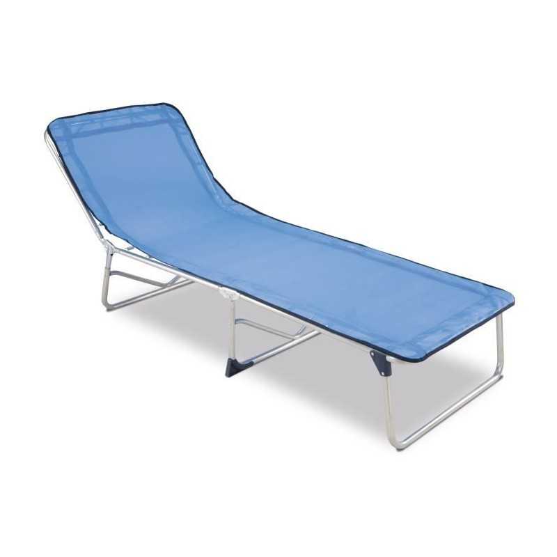 Bain de soleil bleu - Plusieurs positions de la tetiere - Avec poignées - Tube en aluminium - Tissu PVC tissé.