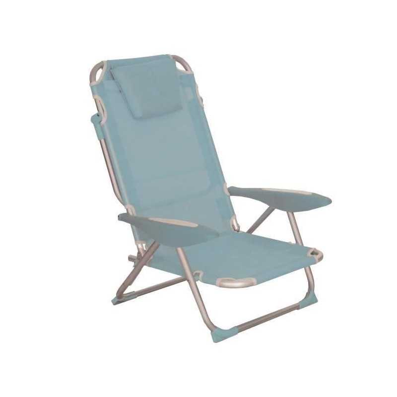 FAUTEUIL "Clic Clac des Plages" TOILE TEXTILENE, STRUCTURE ALUMINIUM ANODISE, CREMAILLERE PAR ACCOUDOIRS 4 POSITIONS, COUSSIN APPUI TeTE, POCHE DE RANGEMENT, POCHE ZIPPE CACHEE, BRETELLES SAC A DOS