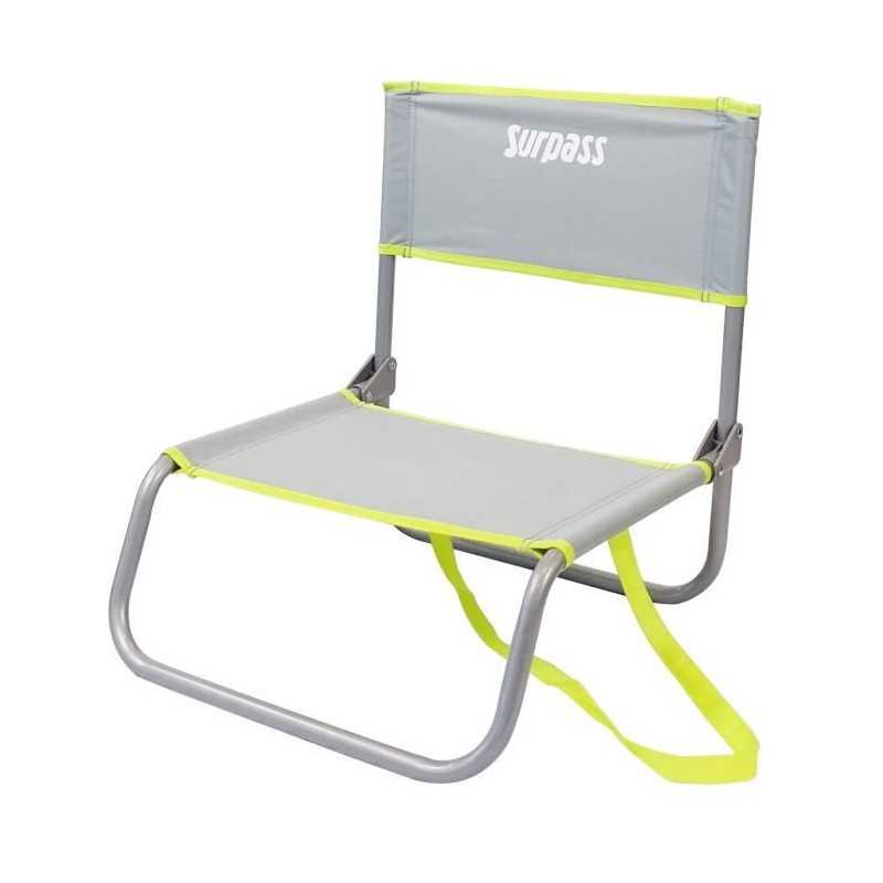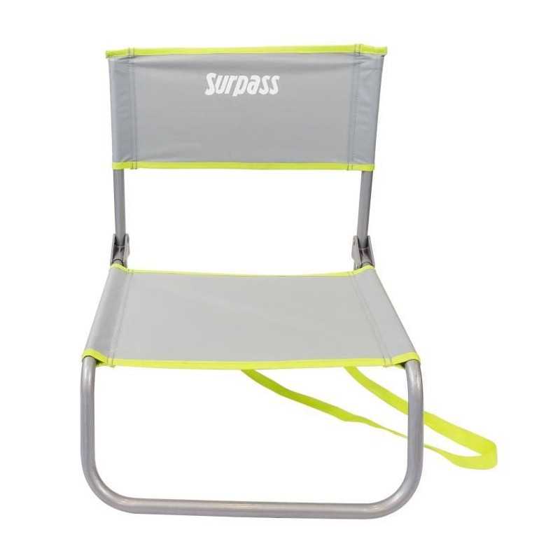 Chaise basse de plage SURPASS vert et gris - Avec sangle de transport - Dimensions: L.49 x I.46 x H.50 cm - Matieres: tube en acier de 19×0,8 mm, polyester 600*300D