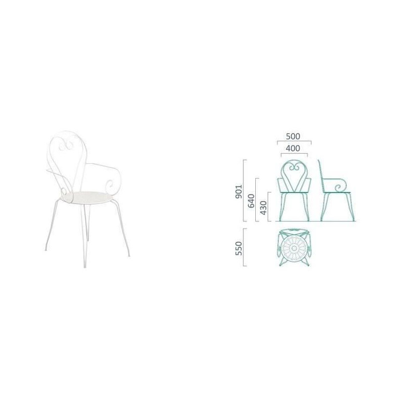 Lot de 4 fauteuils - Acier et textile - Hauteur du siege...