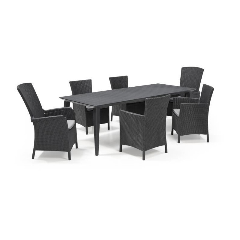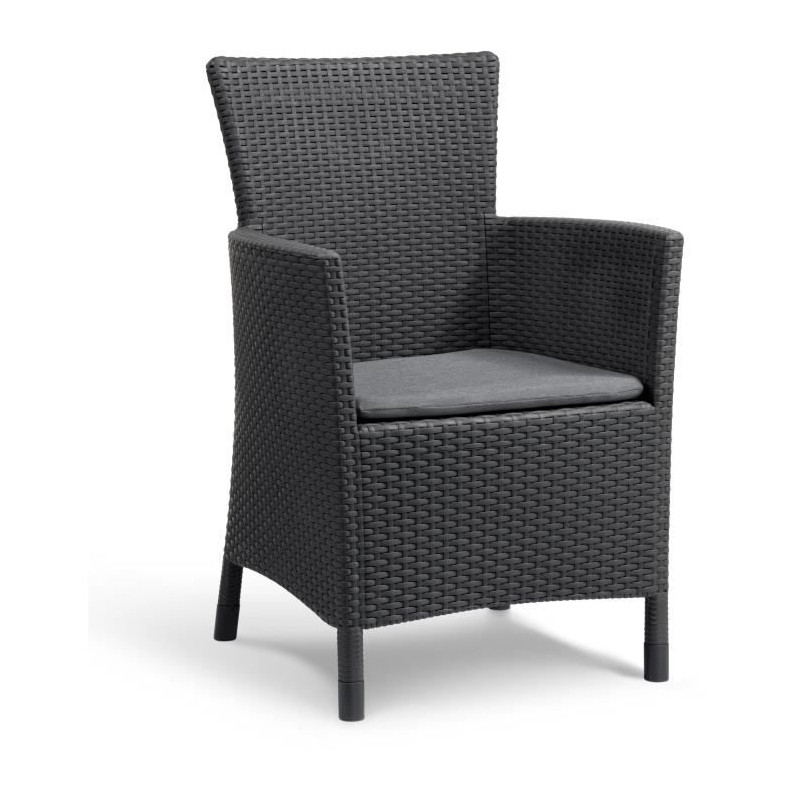 Fauteuil graphite en résine de synthése (Polypropylene-CaCo3) imitation rotin tressé avec coussin gris 100% polyester (62 x 60x 89 cm) - A monter soi-meme - Garantie 2 ans - couleur : Gris