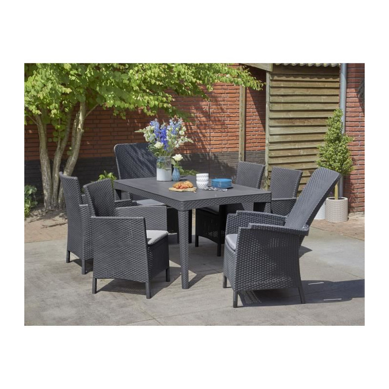 Allibert by KETER - Iowa - fauteuil de jardin - aspect rotin tressé avec coussin - gris graphite