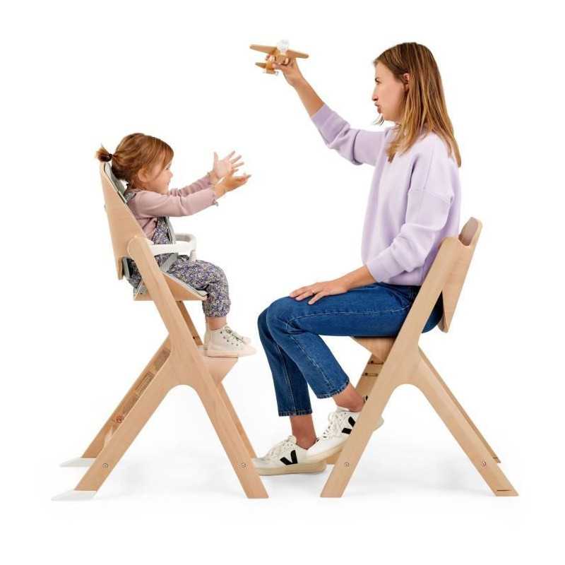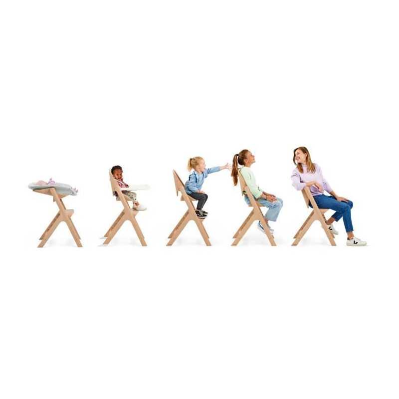 Chaise haute bois évolutive de la naissance a l'âge adulte. Dossier inclnable avec position allongée en mode nouveau-né et position droite pour les plus grands. Repose-pieds ajustable. Bois de hetre. Design sobre et épuré. Kit nouveau né (Naissance-6 mois) et Kit enfant (a partir de 6 mois) vendus séparément