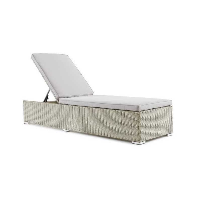 Bain de soleil en résine tressée Alvito avec coussin en polyester épaisseur : 5cm pour un tres bon confort. Dimensions : 198x62xH31cm. Structure : acier galvanisé