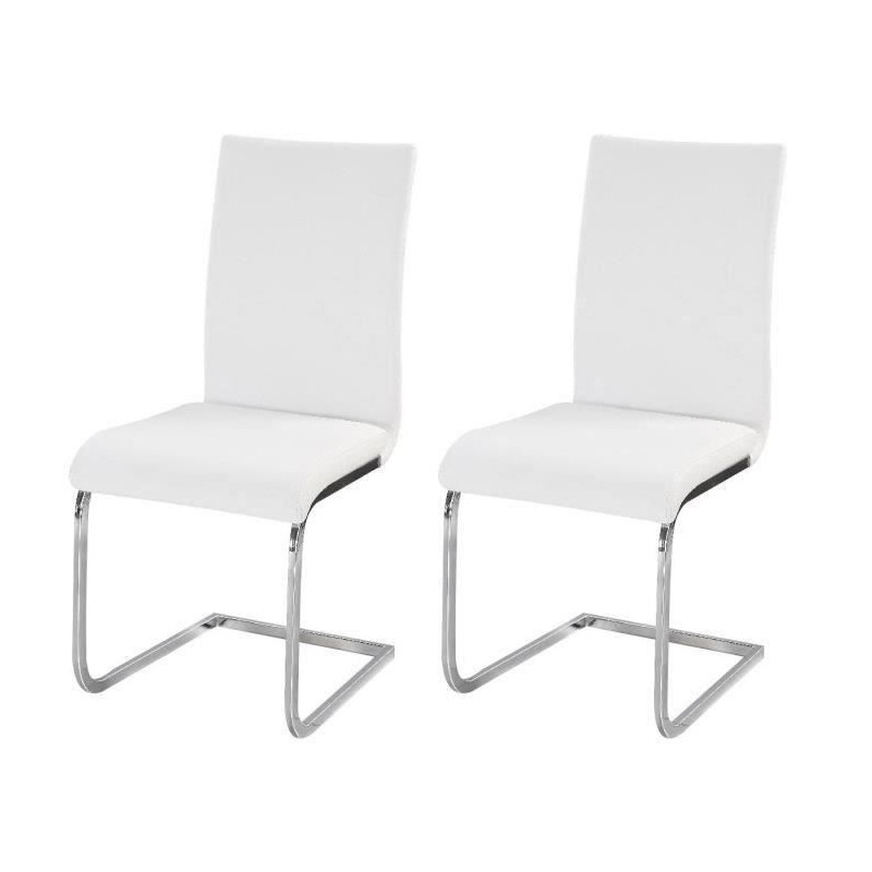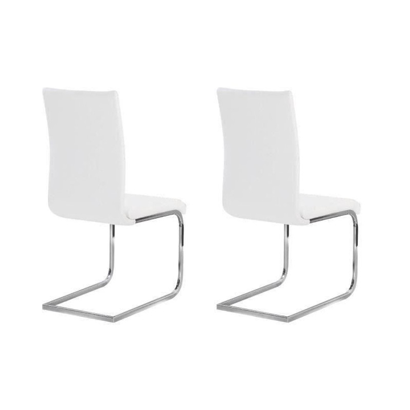 LEA Lot de 2 chaises de salle a manger - Design et contemporain - Structure en métal - Revetement en polyuréthane - Motif uni - Garnissage : mousse polyuréthane - Accessoires livrés : 1 notice d'assemblage et 2 sacs de quincaillerie composé chacun de 8 vis, 8 rondelles et 1 clé allen - Dimensions : 43x56x97 cm.