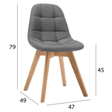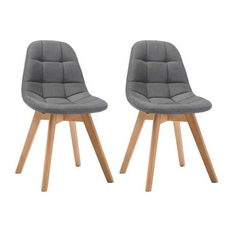 Lot de 2 chaises de salle a manger ANYA - style et design scandinave - pied bois hetre massif naturel - assise rembourrée tres confortable mousse polyuréthane densité 24 kg/m3 - finition tissu gris 100% polyester - dimensions 44 x 50 x 84 cm hauteur assise 45 cm - entretien et montage facile - garantie 2 ans.