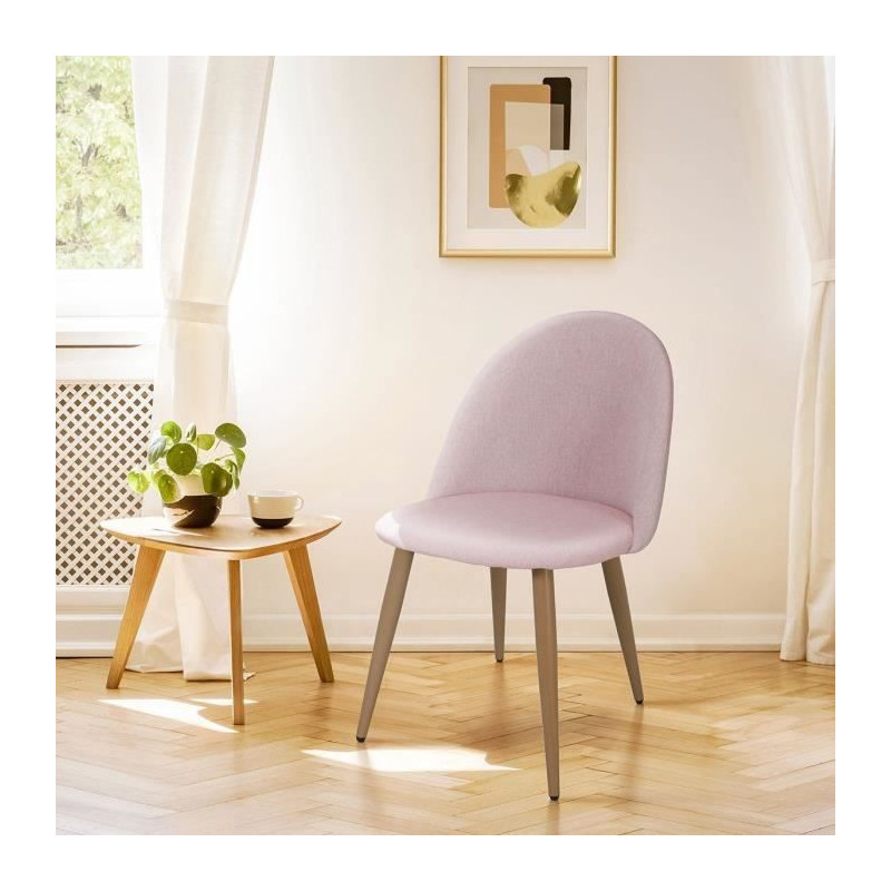 Chaise en tissu rose - Pieds en métal - L 53 x P 54 x H 76 cm - COLE