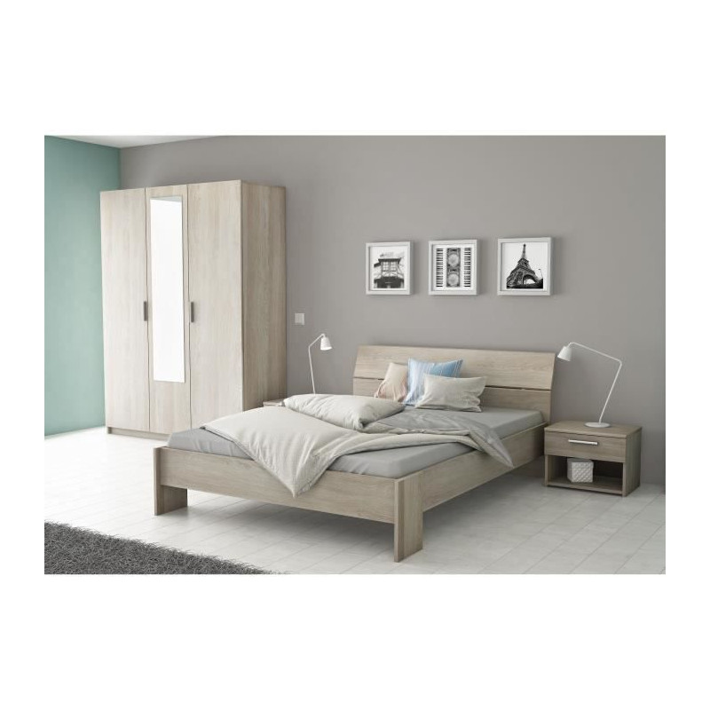 PARISOT Ensemble chambre lit 140x190 cm + 2 chevets + 1...