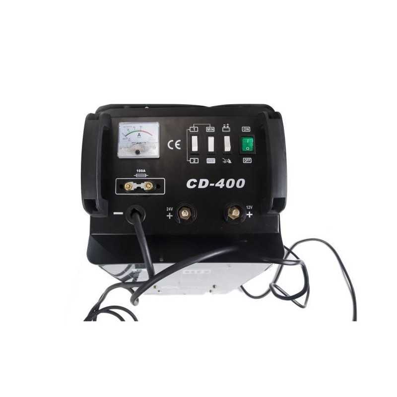 Chargeur et démarreur Pro - Pour tous les véhicules équipés de batteries au plomb allant de 20 a 700 Ah - Courant de sortie : 12/24 V - Courant nominal de charge 40A - Puissance : 1400 W - Fonction d'aide initiale / démarrage - Range-câbles intégré - Fusible de protection - 2 vitesses de charge - Alimentation : 230V - 50/60 Hz
