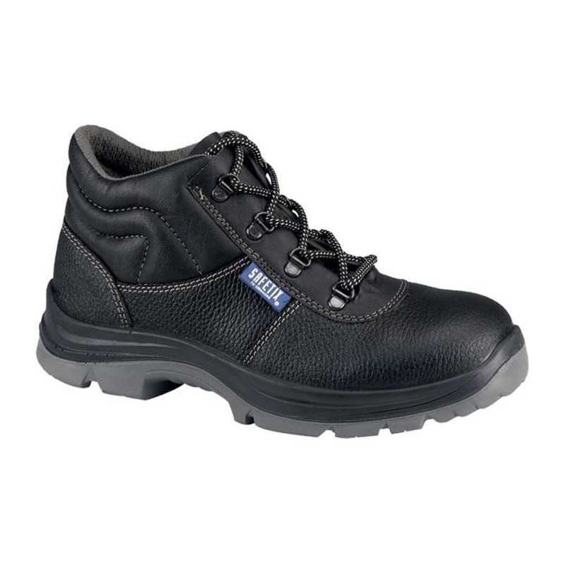 Chaussures de sécurité hautes en cuir grainé. Semelle large pour plus de confort, souple et légere. Embout acier. Insert anti-perforation en acier inoxydable. Usage polyvalent : intérieur et extérieur.