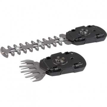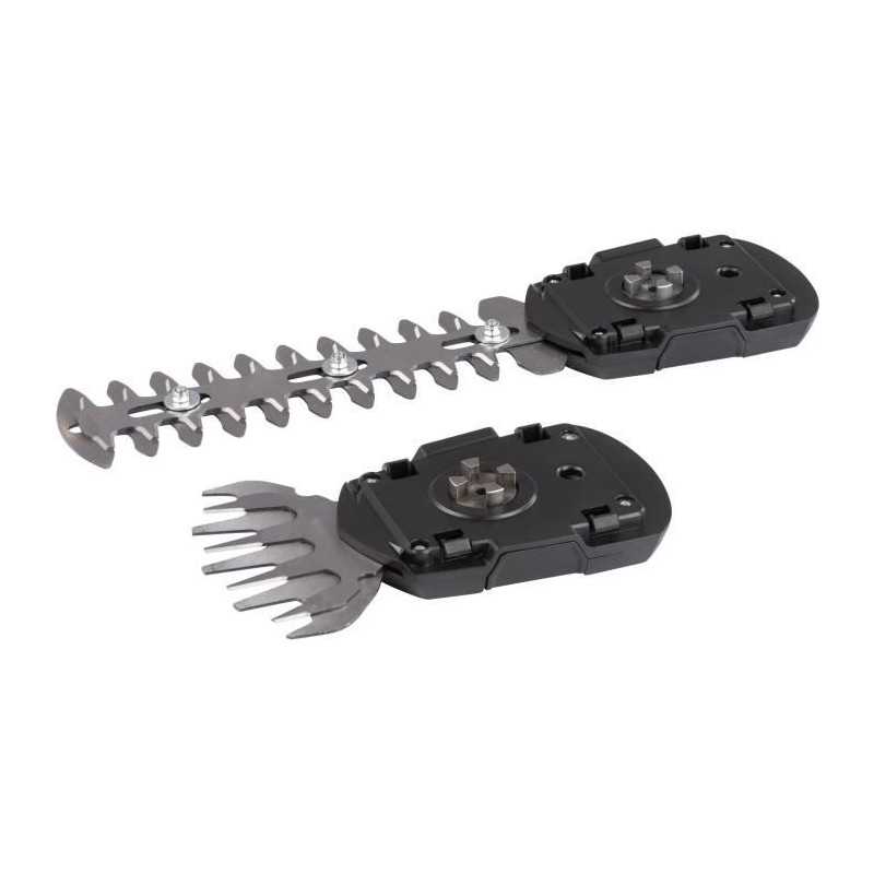 Cisaille 2-en-1 Puissance : 7,2 V Vitesse : 1200 min-1 Largeur de la lame herbe : 100 mm Longueur de lame taille haie : 180 mm Capacité de la batterie : 1500 mAh Temps de charge : 2-3 h Ne pese : 940 g cisaille de gazon / batterie / chargeur / lame herbe / lame haie
