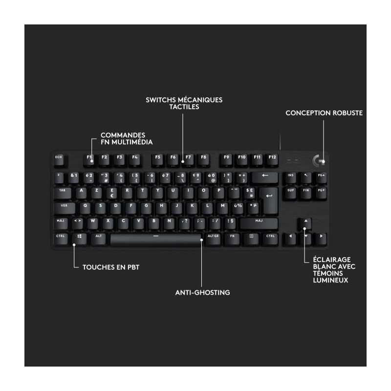 Le clavier gaming mécanique Logitech G413 TKL SE met a votre portée l'ingénierie éprouvée de Logitech G, comme les touches en PBT et les switchs mécaniques tactiles.