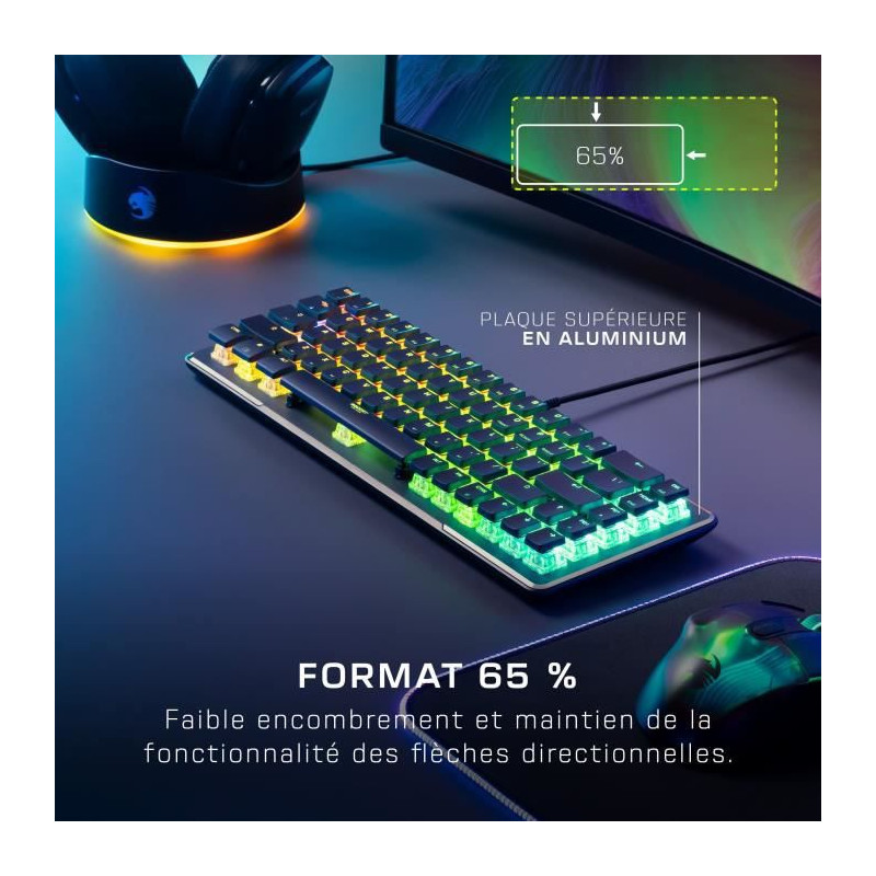 Clavier filaire - Optique et mécanique - ROCCAT - Vulcan II Mini - AZERTY - Rétro-éclairage - Noir
