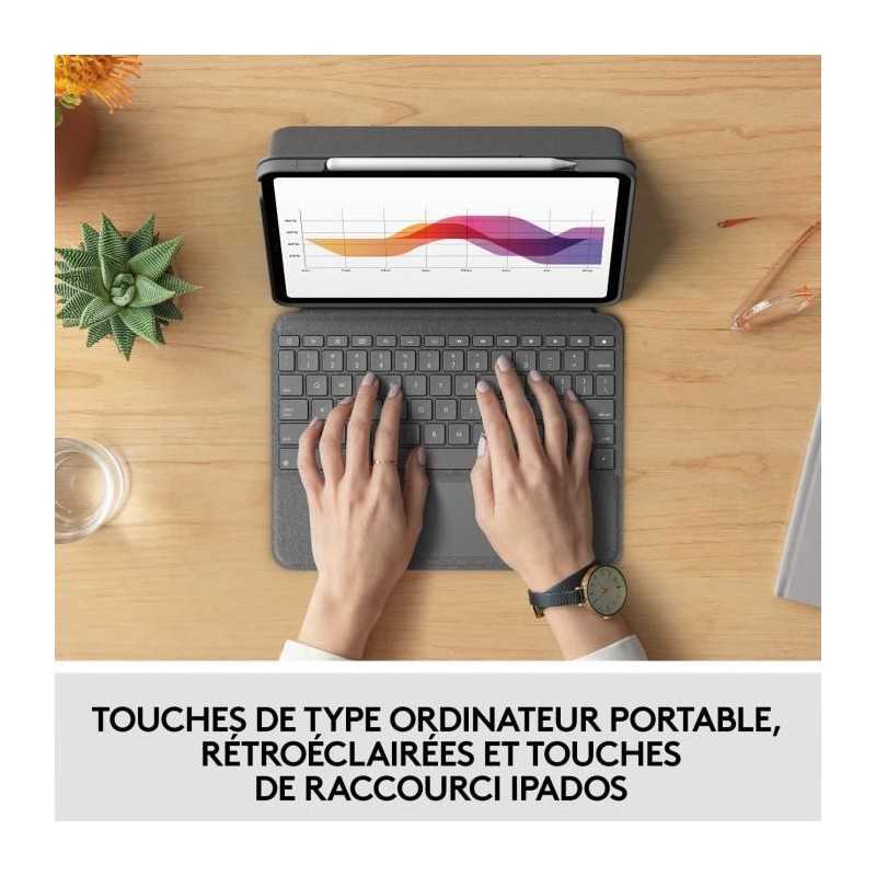 Etui clavier pour iPad - 4 et 5ieme gen - LOGITECH - FOLIO TOUCH IPAD AIR - Gris