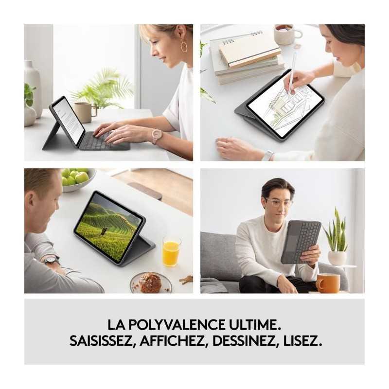 Un étui pour tout faire. Saisissez, dessinez, affichez et lisez avec Folio Touch pour iPad Air, un étui clavier rétroéclairé avec un trackpad de haute précision