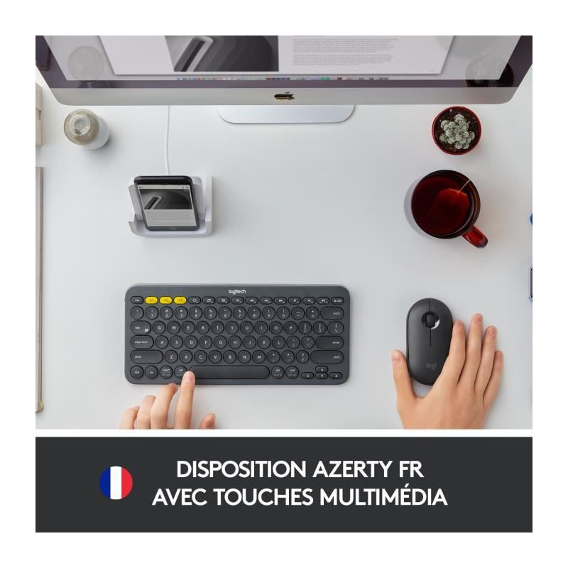 LOGITECH - Clavier K380 - Multi-Device Bluetooth Keyboard - AZERTY - Noir