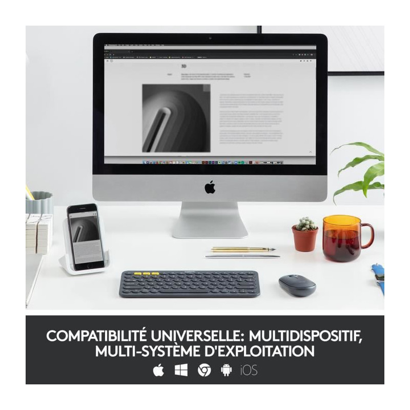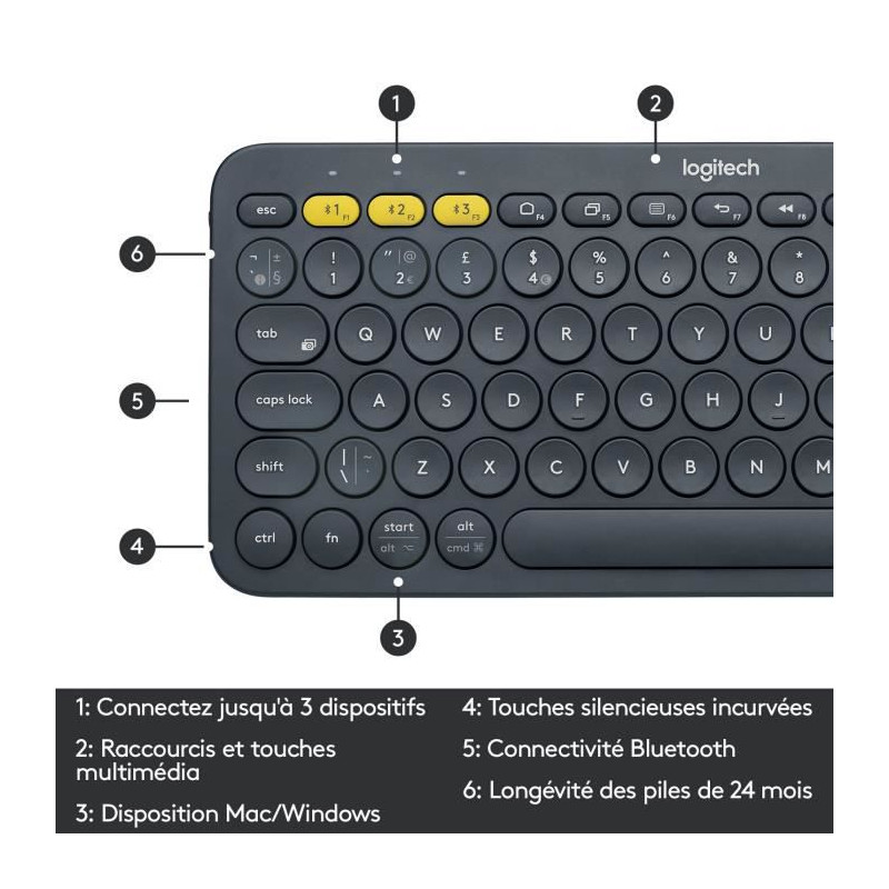 Logitech Clavier K380 Multi-Device Bluetooth Keyboard - Effectuez des saisies et basculez entre trois dispositifs Bluetooth sans fil (smartphone, tablette, PC, etc.) - Confort de saisie de bureau - Léger et compact - Longévité des piles de 2 ans - Compatible Windows, Mac, Chrome OS, Android, iOS, Apple TV - 2 ans de garantie du fabricant.