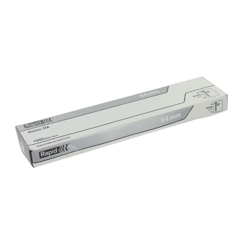RAPID Clous N°32/64. Boîte de 1000 pcs. Clous en acier galvanisé haute performance, ayant une tete en D et disposés sur une bande ayant un angle a 34°. Parfaits pour des applications de finition comme la menuiserie ou la pose de cadres de portes.