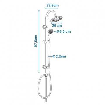 Tete de douche orientable, Ø 200 mm, ABS chromé, picots anticalcaire - Bras de douche Ø 22 mm, inox chromé, embases ABS mobiles, support douchette, flexible inox double agrafage 60 cm, inverseur laiton et a poussoir - Douchette 5 jets, Ø 85 mm - Flexible inox 1,50 m, double agrafage