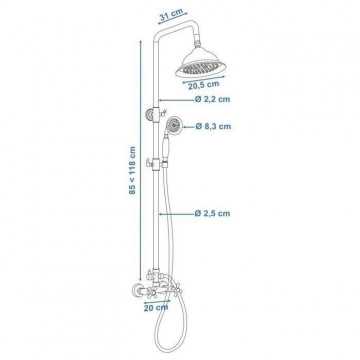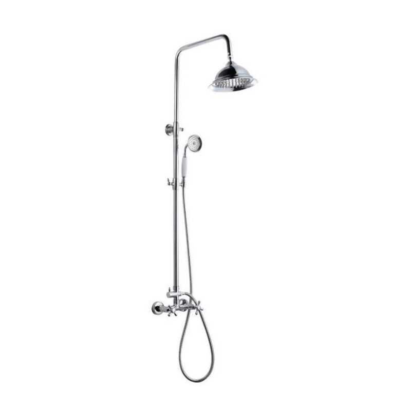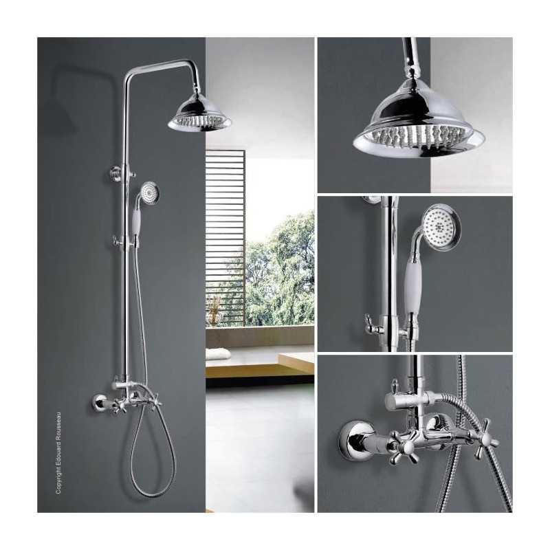 Tete de douche orientable, Ø 205 mm, inox chromé, picots anticalcaire - Bras de douche 0,85 a 1,18 m et Ø 22 et Ø 25 mm, inox chromé, embase fixe, support douchette, inverseur laiton et disques - Douchette 1 jet, Ø 83 mm, inox chromé - Flexible 1,50 m, double agrafage - Mélangeur avec tete céramique 1/4 de tour, entraxe 150 mm